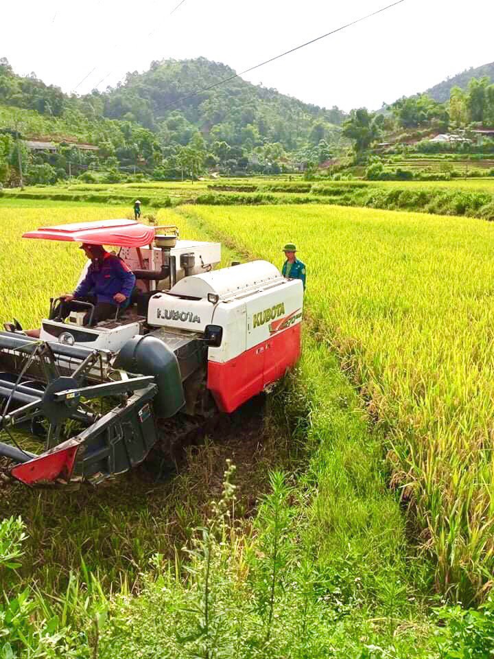 (Thành viên HTX nông nghiệp Hảo Anh kết hợp cùng 63 hộ dân sử dụng công nghệ, máy móc tiên tiến tham gia sản xuất lúa Séng Cù Mường Vi)